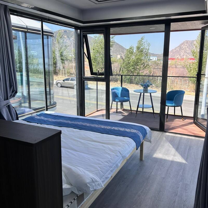 Sebagai kamar tamu unggulan di hotel langit berbintang atau resor ramah lingkungan, memberikan pengalaman alam yang mendalam.