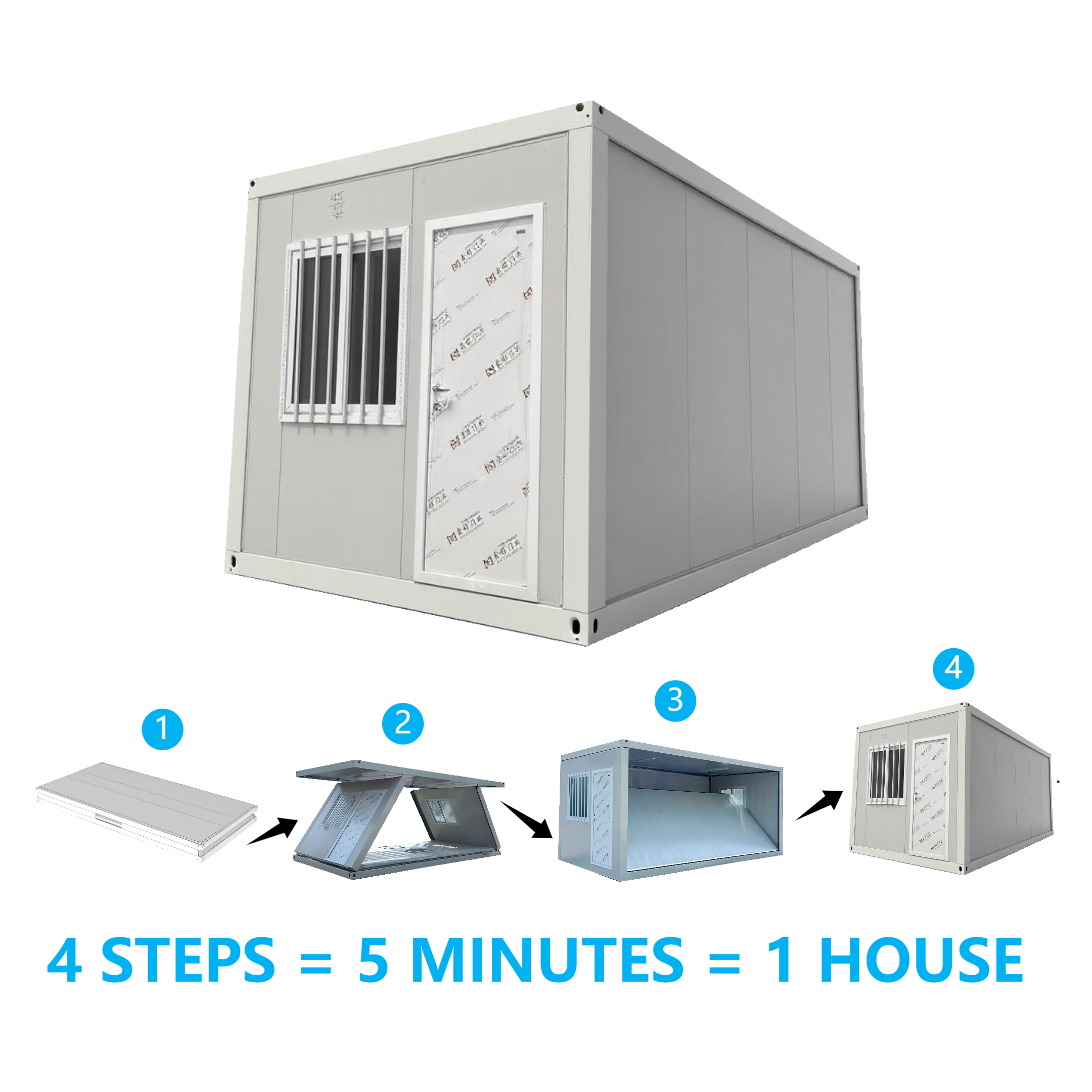 Metode lipat "Z" memungkinkan rumah dikompres secara longitudinal, dan volume setelah dilipat hanya 1/3~1/4 dari keadaan tidak terlipat, sehingga secara signifikan mengurangi biaya logistik.