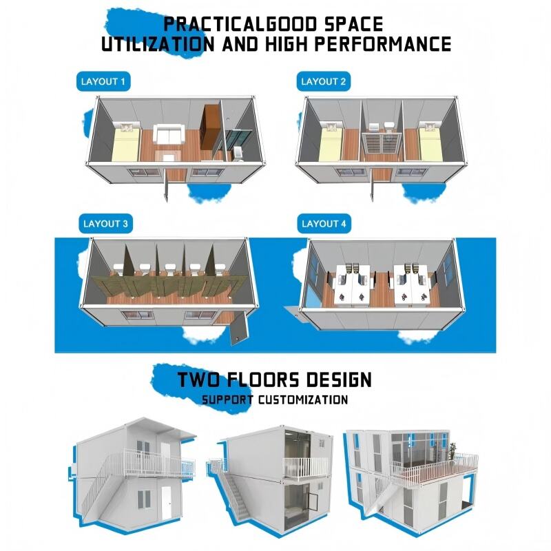 Rumah kontainer flat pack adalah bangunan prefabrikasi modular yang dapat cepat dibongkar berdasarkan ukuran kontainer standar, dirakit menggunakan rangka baja dan panel komposit. Rumah ini memiliki karakteristik transportasi yang mudah, pemasangan yang efisien, serta dapat digunakan kembali, dan banyak digunakan dalam bidang perumahan sementara, perkemahan di lokasi konstruksi, toko komersial, bantuan darurat, dan lainnya.