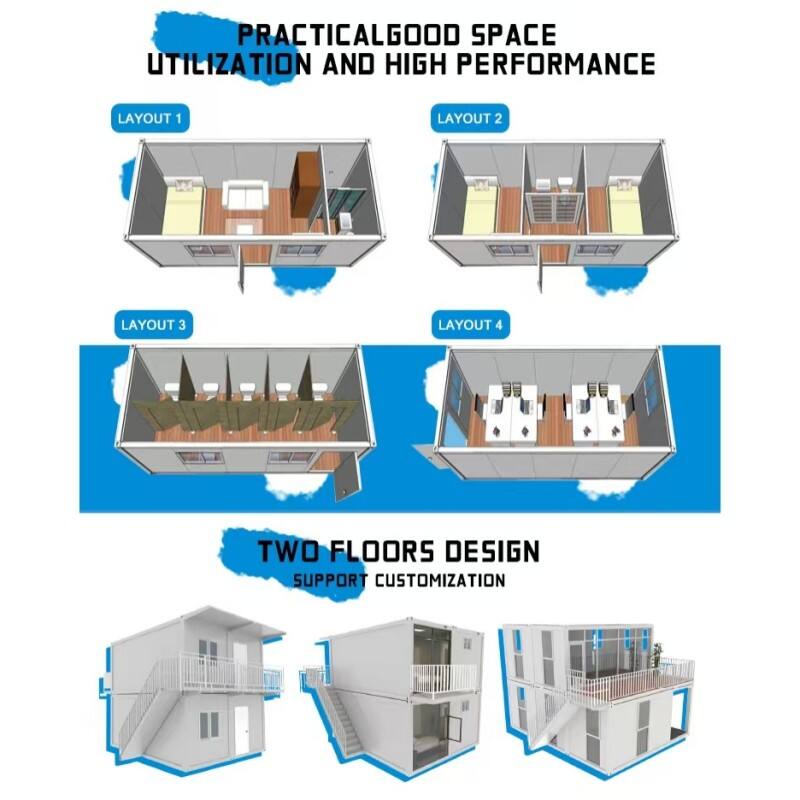 Desain Modular: Dengan ukuran kontainer standar 20 kaki sebagai unit, dapat disambung secara fleksibel dan diperluas untuk memenuhi berbagai kebutuhan ruang.